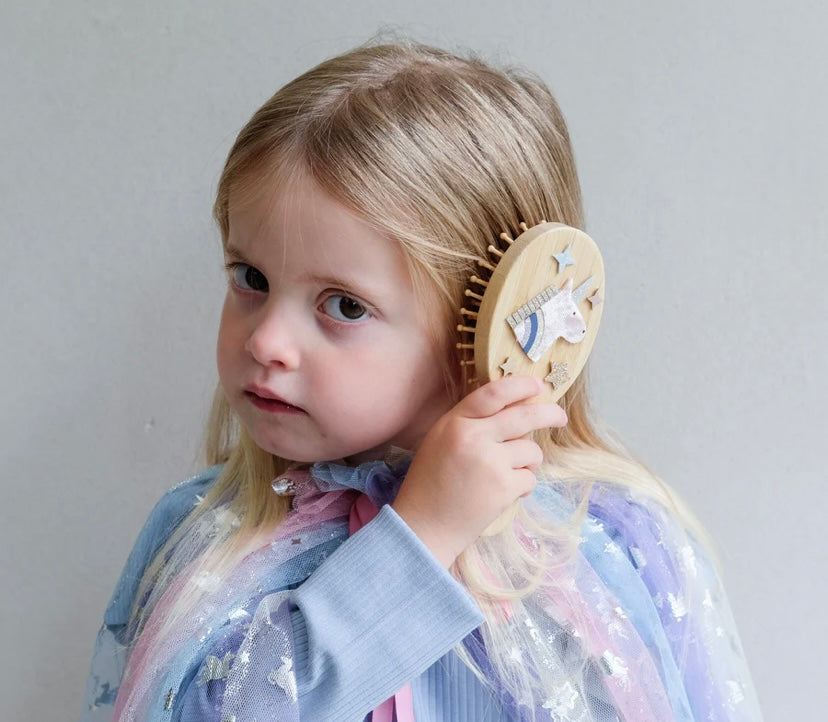 Découvrez notre nouvelle brosse à cheveux Licorne ! Aussi jolie que pratique, cette petite brosse est idéale pour dompter la crinière de toutes les petites fans de licornes !