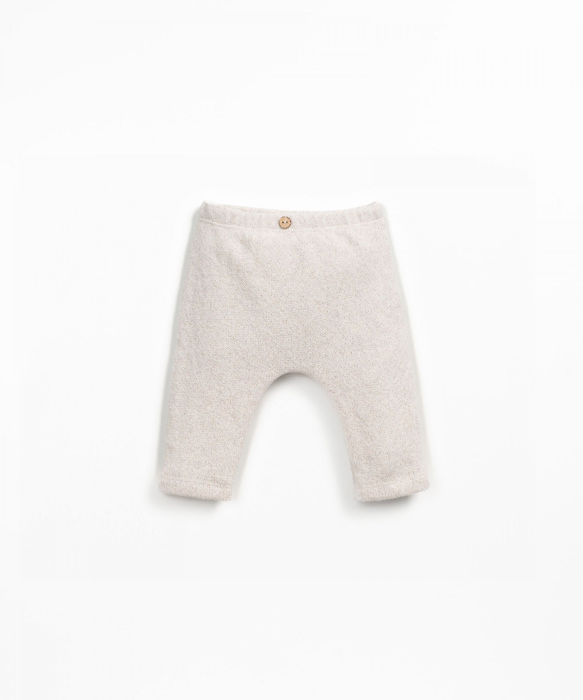 Ce pull présente des manches longues, un col en V et une ouverture croisée sur le devant avec des boutons en coco à l'extérieur et un bouton-pression en métal sans nickel à l'intérieur. Legging avec intérieur gratté, taille élastique et pieds intégrés.