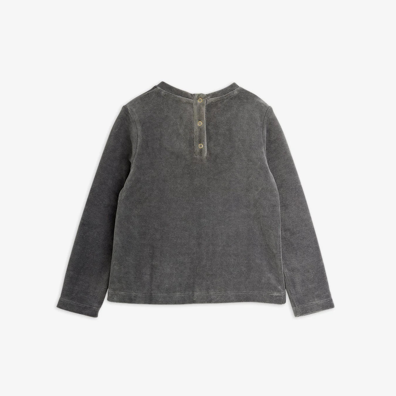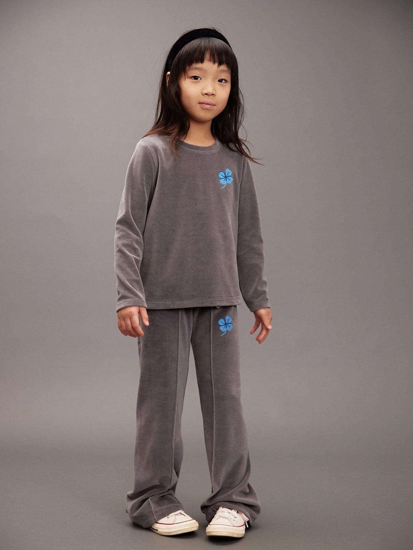 T-shirt à manches longues en velours, confectionné en coton biologique certifié GOTS, légèrement extensible. Orné d'un trèfle brodé.
